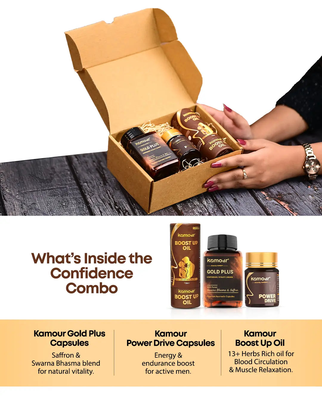 Kamour Confidence Combo – Ayurvedic Stamina Capsules & Oil Pack